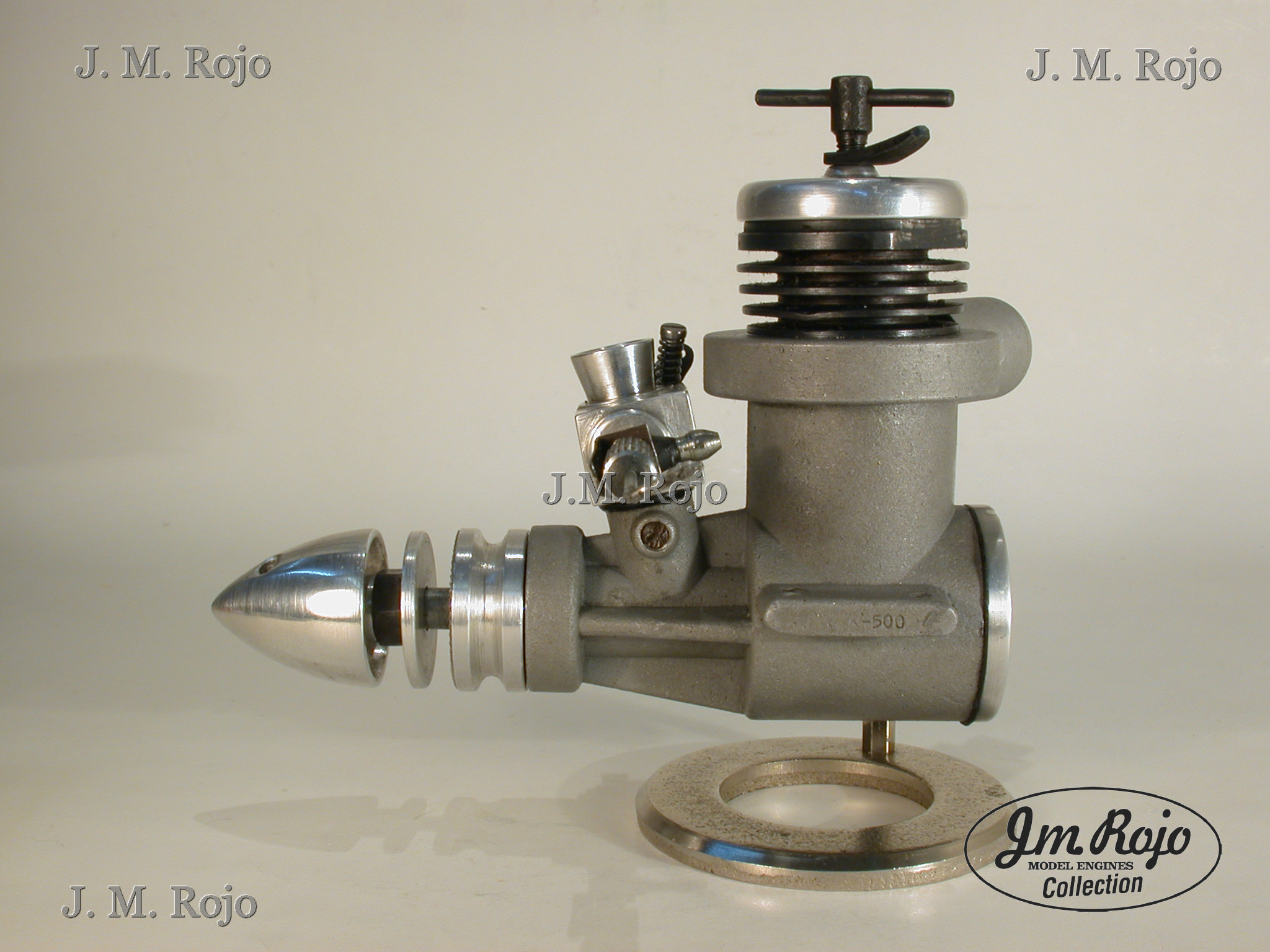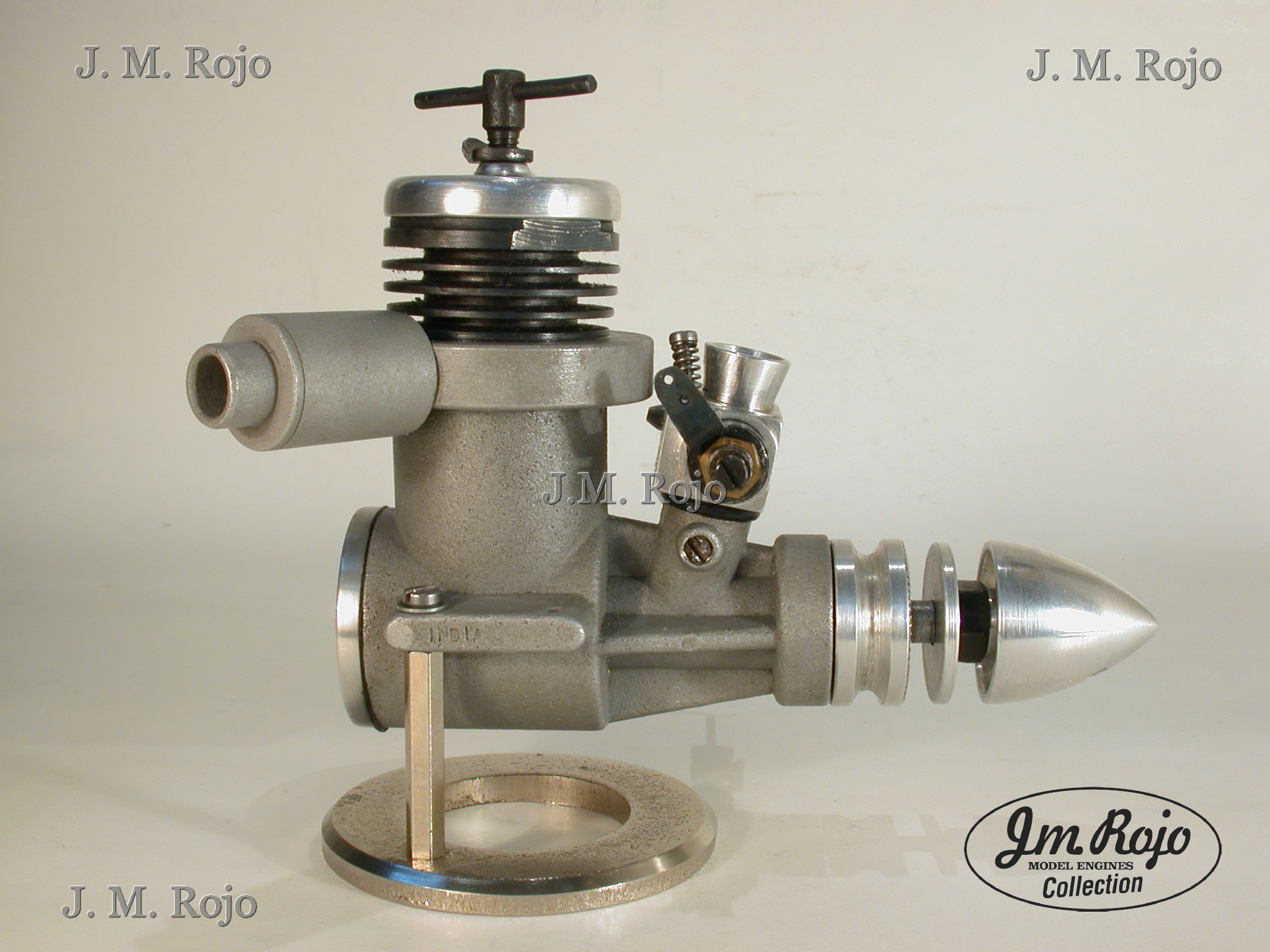 Motor fabricado en la India de aspecto un poco tosco. Este modelo es una reduccion de cilindrada del modelo K-600. Es de transferencia radial, con camisa de acero, pistón de mehanita y esta dotado de silenciador. Por mucho que he buscado datos en la red no he logrado completar la información del motor. |