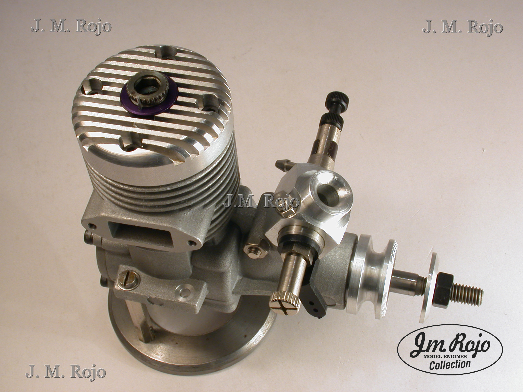 Serie moderna del motor dotado además de carburador de radio control con regulación del mínimo. Camisa y pistón de tipo ABC y cigüeñal sobre dos cojinetes de bolas. Este modelo diesel esta dotado de una culata de compresión regulable. Una particularidad de este motor es que antes de iniciar el rodaje puede escogerse la dirección del escape (lateral o trasero). |