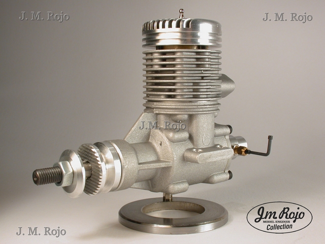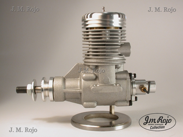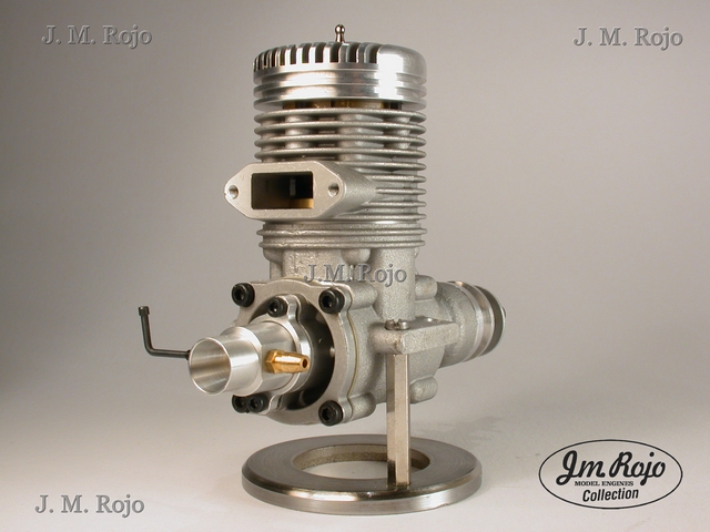 Último de los motores fabricado por MVVS para la acrobacia de vuelo circular, especialidad en la que siempre han destacado sus motores. Conjunto de camisa y pistón del tipo ABC, cigüeñal sobre dos cojinetes de bolas y válvula rotativa trasera. En definitiva se trata de un motor de elevadas características técnicas. |